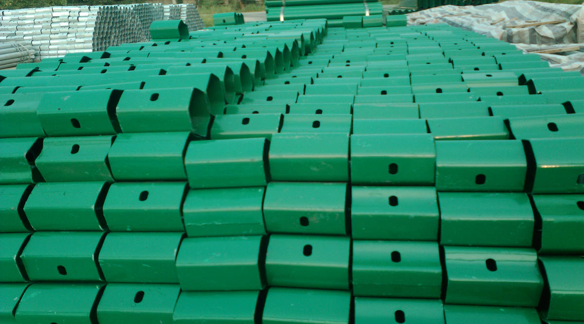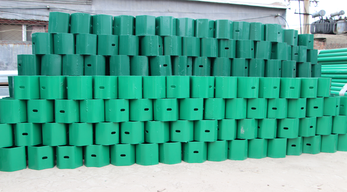 立柱与板相连接的方式有防阻块式和托架式,主要用于波形护栏。